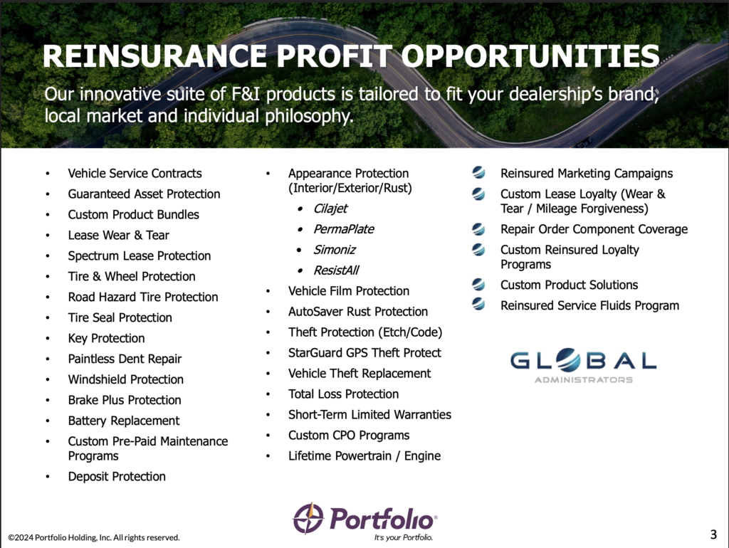 Our innovative suite of F&I products is tailored to fit your dealership’s brand, local market and individual philosophy.